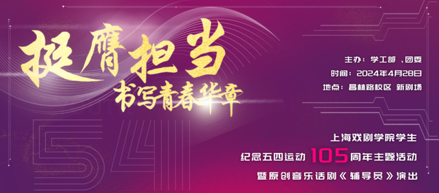 今年的五四青年节前夕,上海戏剧学院举行了“挺膺担当·书写青春华章——纪念五四运动105周年主题活动暨原创音乐话剧《辅导员》演出”。上海市教卫工作党委、市教委、闵行区、松江区有关领导出席本次主题活动。600余名上戏师生共聚新剧场,点燃激情与梦想,澎湃青春与力量。