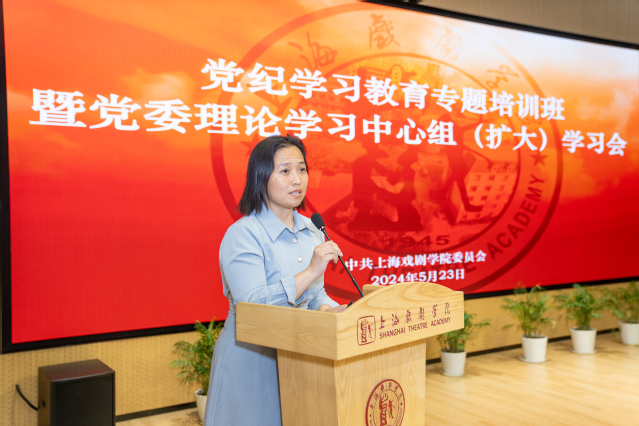 为深入学习贯彻习近平总书记关于加强党的纪律教育的重要论述,扎实开展党纪学习教育,5月23日下午,学校召开党纪学习教育专题培训班暨党委理论学习中心组(扩大)学习会,围绕学习《中国共产党纪律处分条例》(下称《条例》),联系实际工作展开交流。戏曲学院党总支书记徐莹、财务处处长毕天睿、基建处处长陈亚捷、纪检监察室副主任王晔斐在会上作交流发言。
