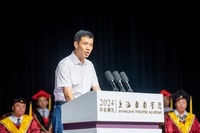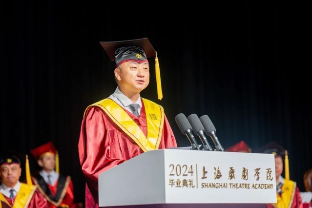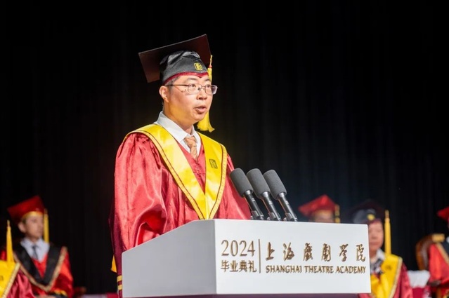 在学位授予仪式环节,党委常委、副院长聂伟宣读了《上海戏剧学院关于授予2024届博士、硕士、学士学位的决定》。