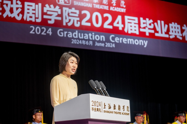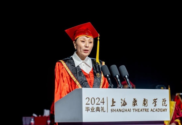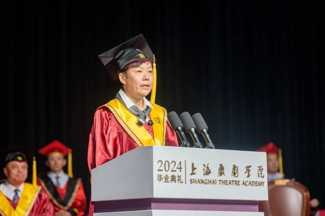 上午九时,上海戏剧学院2024届毕业典礼在庄严的国歌声中拉开帷幕。校党委副书记、副院长徐咏主持毕业典礼。