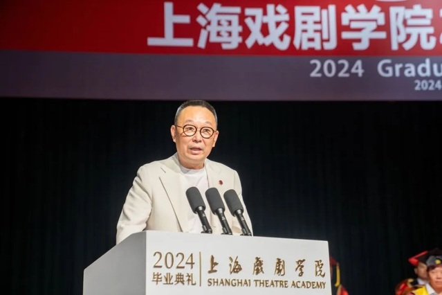 作为毕业生家长代表发言的,是戏剧文学系硕士毕业生柯可的父亲柯贵鹏。柯可获得了“国家建设高水平大学公派出国留学”资格,即将赴德国慕尼黑大学攻读博士学位。柯贵鹏先生分享了自己对于女儿成长的感悟,并以“历经千帆,初心不变,做一个感恩、包容、担当、有为的时代弄潮儿”,祝福所有的上戏毕业生。