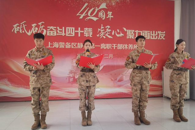 当面对老一辈军人,如:静安区第一离职干部休养所的爷爷奶奶们时,宣讲团带来了脍炙人口的戏曲《沙家浜》选段。那熟悉的旋律和唱腔,瞬间将老人们带回到往昔的峥嵘岁月。