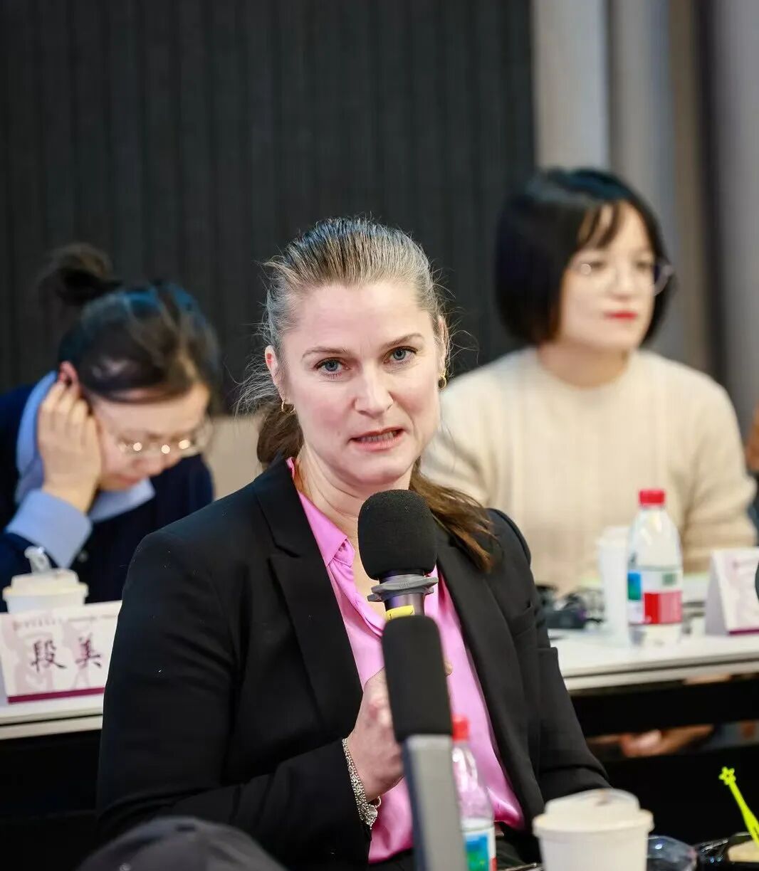 宋韬总领事、宫宝荣教授、挪威编辑兼作家Cecilie Seiness以及邹鲁路副教授共同为中心揭牌,与会人员一同见证了这一重要时刻。中心的成立既是对福瑟艺术成就的致敬,也是我校深化国际戏剧研究、推动跨文化对话的重要举措,期待未来产出更多具有影响力的学术成果与艺术实践,推动中外戏剧文明的对话与共进。