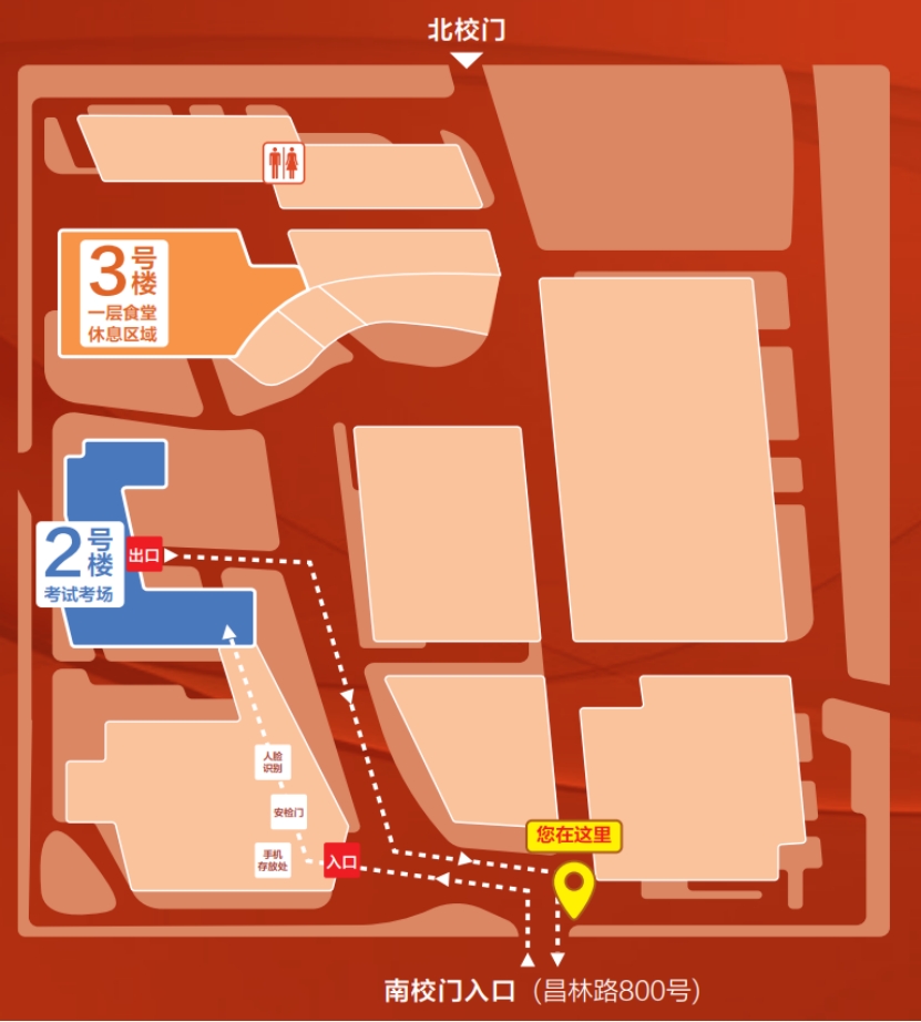 考试当日,考生统一从昌林路800号校门(南门)进入考点。建议考生至少提前60分钟到达,预留足够时间配合安检。