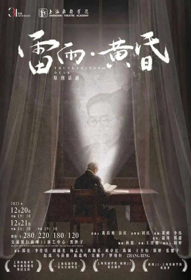 刚刚过去的2025年岁末,由上海戏剧学院与前滩31联合制作的原创话剧《雷雨·黄昏》,在交通银行前滩31演艺中心黑匣子的商业演出落下帷幕,为历时九个月的创作孵化与首轮演出画上了圆满句号。