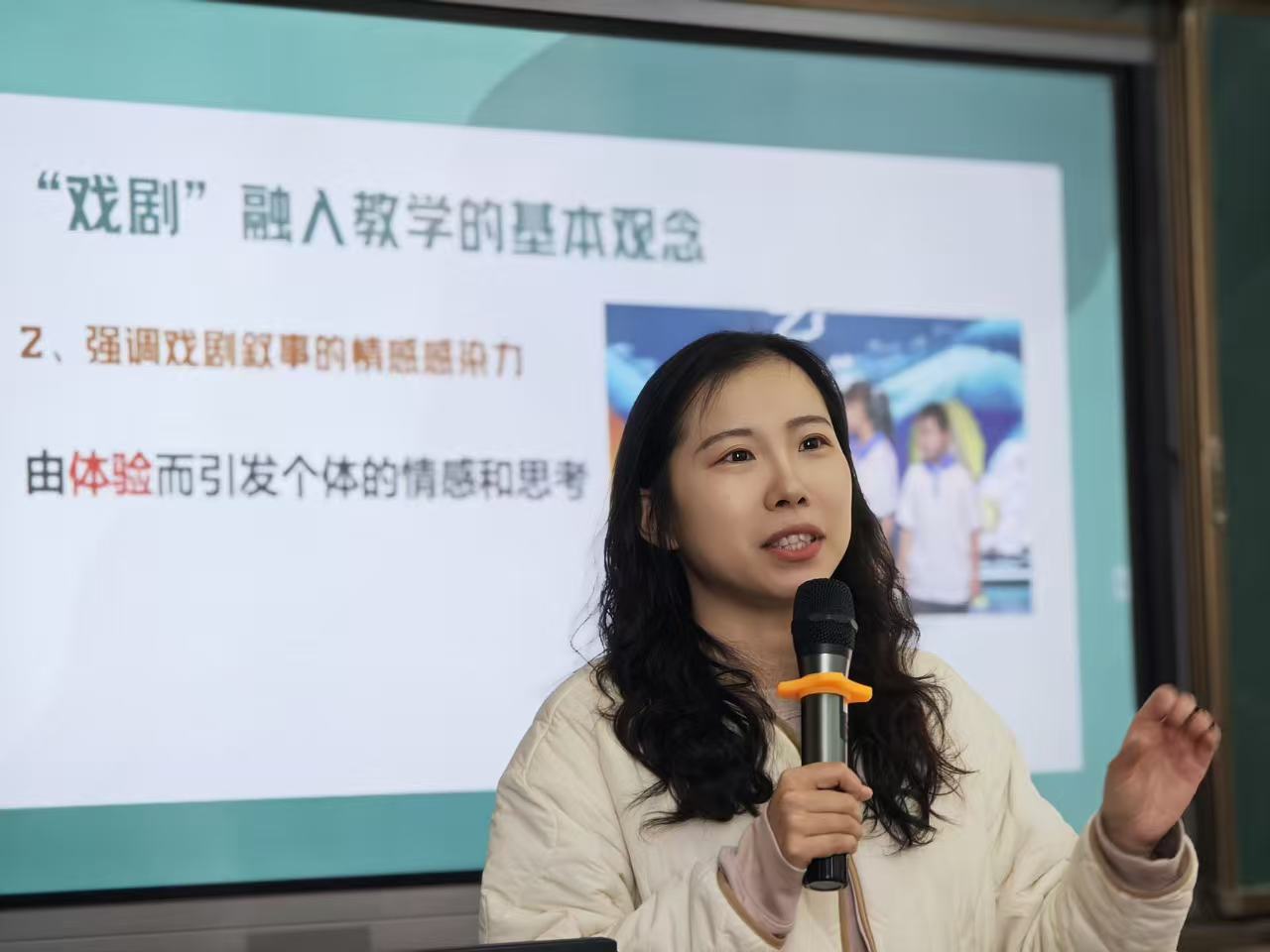 本次培训形式丰富多样、异彩纷呈。上海戏剧学院博士研究生曲晓蒙在《变奏·融合·生成——中小学戏剧跨学科实践分享》主题讲座中,通过详实的案例生动讲述戏剧融入教学的基本理念以及戏剧跨学科实践方法。后续通过《一名威尼斯的商人》戏剧工作坊,带领老师们重返莎士比亚的戏剧张力瞬间,以戏剧教育范式共同塑造立体真实的“威尼斯商人”,并最终完成20分钟的演出。