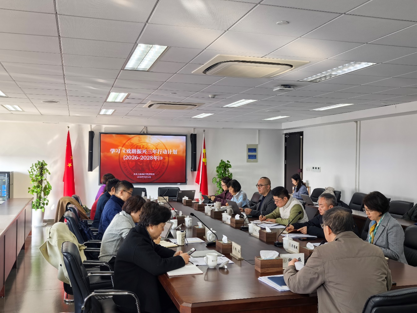 会议指出,在“十五五”开局起步的关键节点,《行动计划》的出台体现出党中央对戏剧事业的高度重视和亲切关怀,为新时代戏剧事业的繁荣发展注入强劲动力,对学校工作具有重要指导意义。会议要求,要及时开展中心组等形式进行专题学习,并结合学校“十五五”规划与相关专项、年度工作,研究制定具体落实举措。会议强调,全校上下要从更高站位理解和认识戏剧振兴的重要意义,切实做到“谋振兴、担责任、找机遇、促发展”,将计划要求充分融入学校改革发展实践,切实推动学校戏剧事业高质量发展。