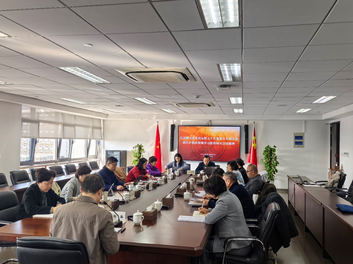 3月12日,我校以党委常委会“第一议题”形式,深入学习了全市和市教卫工作党委关于树立和践行正确政绩观学习教育相关会议精神,并专题学习《戏剧振兴三年行动计划(2026-2028年)》。学校党委书记谢巍主持会议。